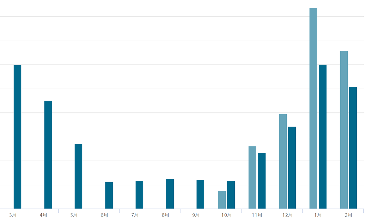 北海道の冬は2月までがピークですので、3月で超えてくることはないでしょう。