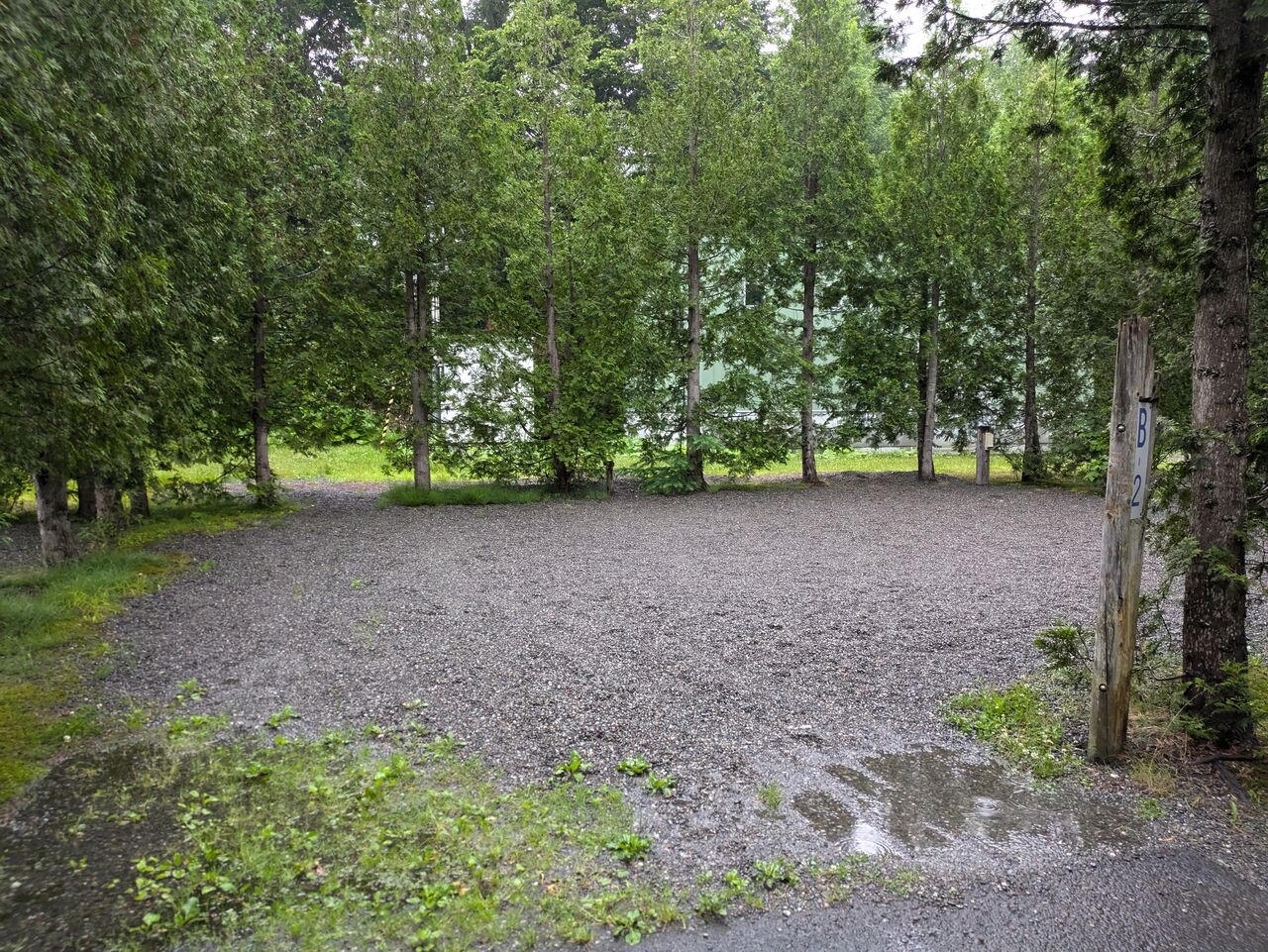 チェックイン時間の一時ころ到着したのですが、人気キャンプ場らしからぬ駐車場。