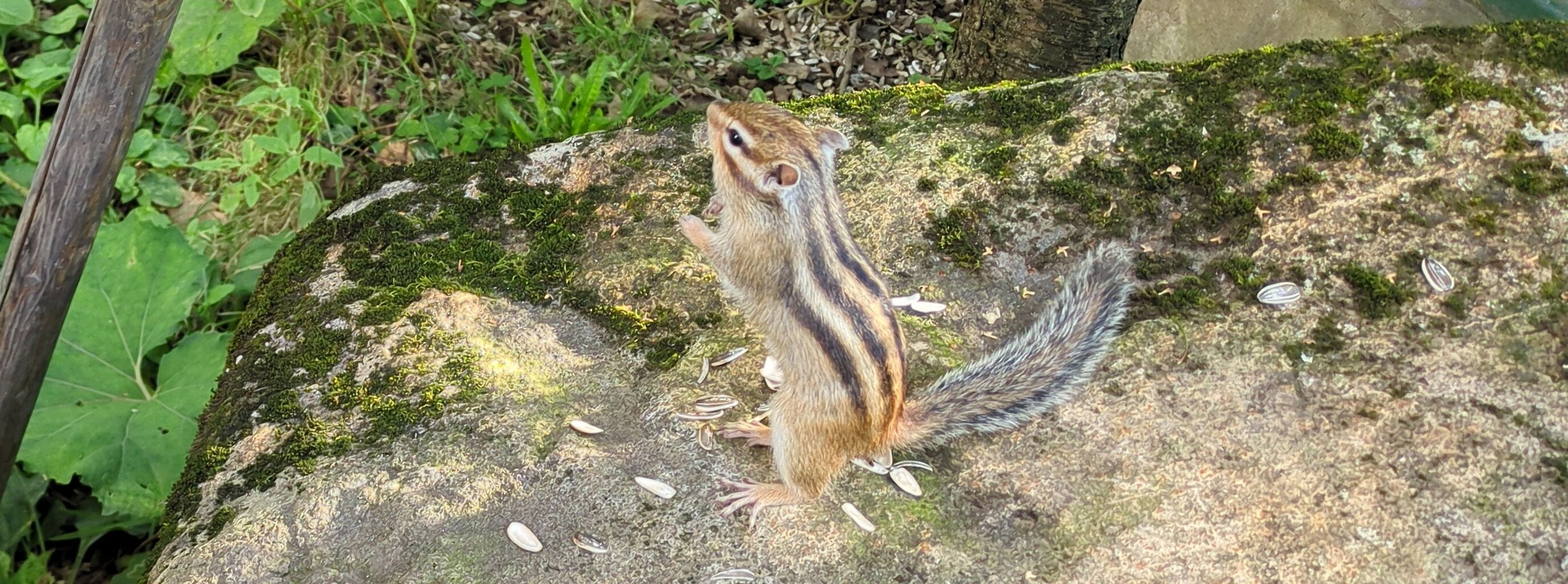 こんな風にかわいらしいシマリスが何匹もいて、餌をあげたりなでなでしたりすることができます。