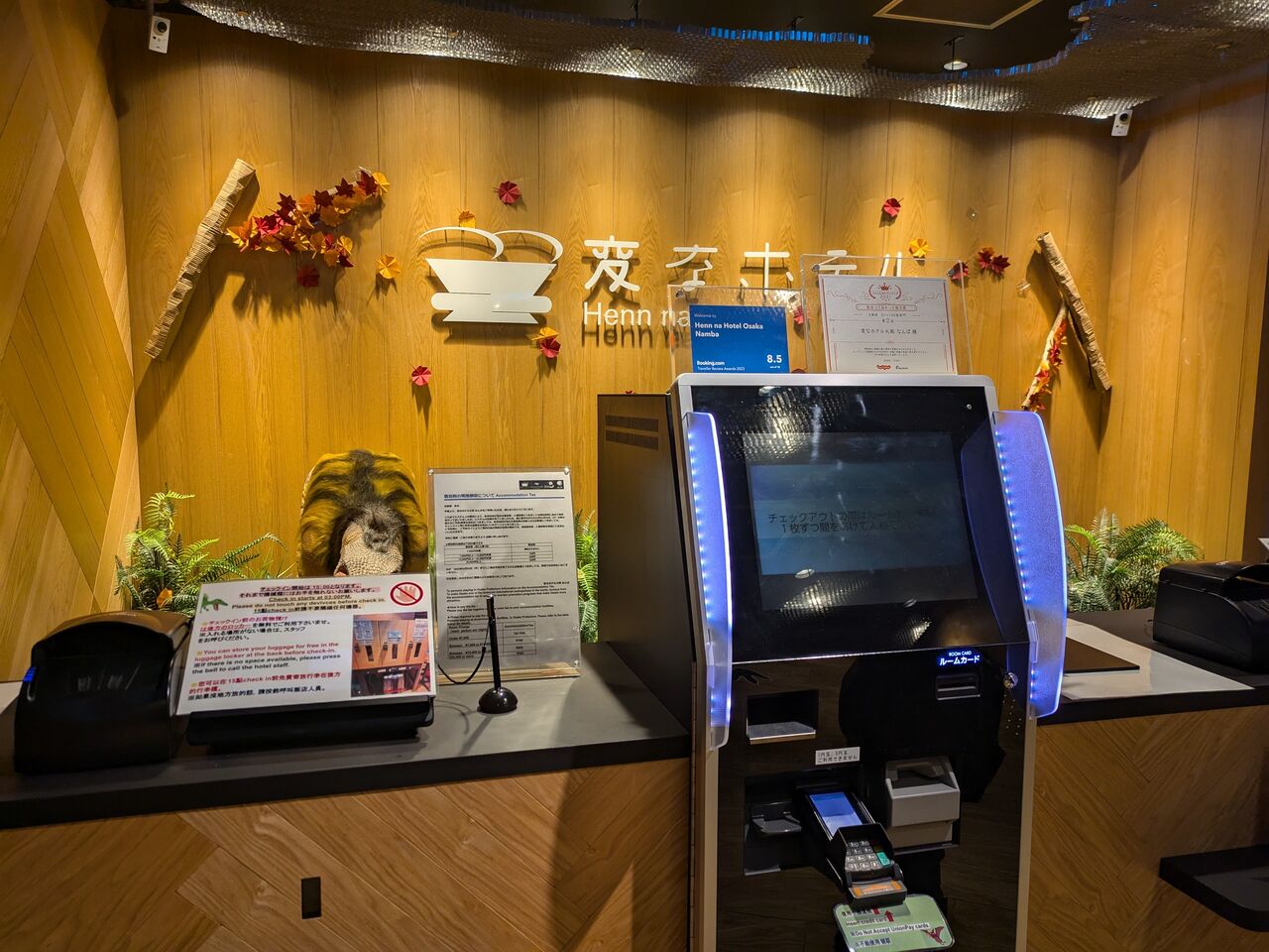 ニュースで見た変なホテルは、人間型のロボットでちょっと怖いな~というイメージだったんですけど、ここは恐竜でした。